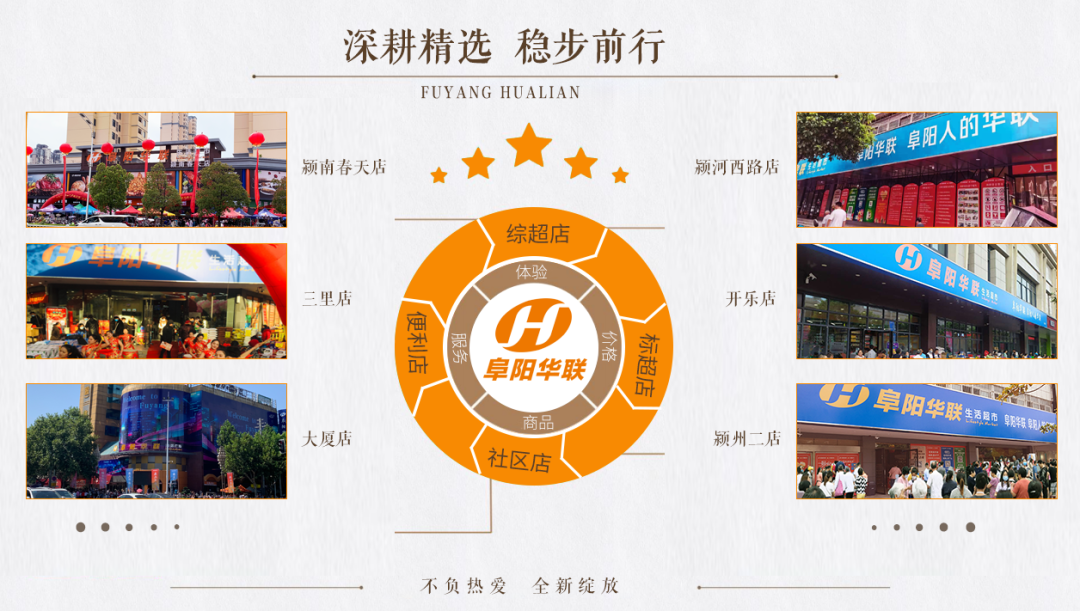 周邊3公里范圍居民人群基數(shù)大,且逐年增多,對(duì)大型超市的需求非常迫切。以周邊家庭客群為主要目標(biāo)客群,強(qiáng)調(diào)生活與休閑娛樂的交流與融合。自1996年品牌創(chuàng)立,阜陽華聯(lián)不斷創(chuàng)新,用多元化的業(yè)態(tài)來布局市場,目前有綜超店、標(biāo)超店、社區(qū)店、便利店等四大業(yè)態(tài),逐漸實(shí)現(xiàn)一個(gè)個(gè)步行10分鐘“華聯(lián)商圈”。