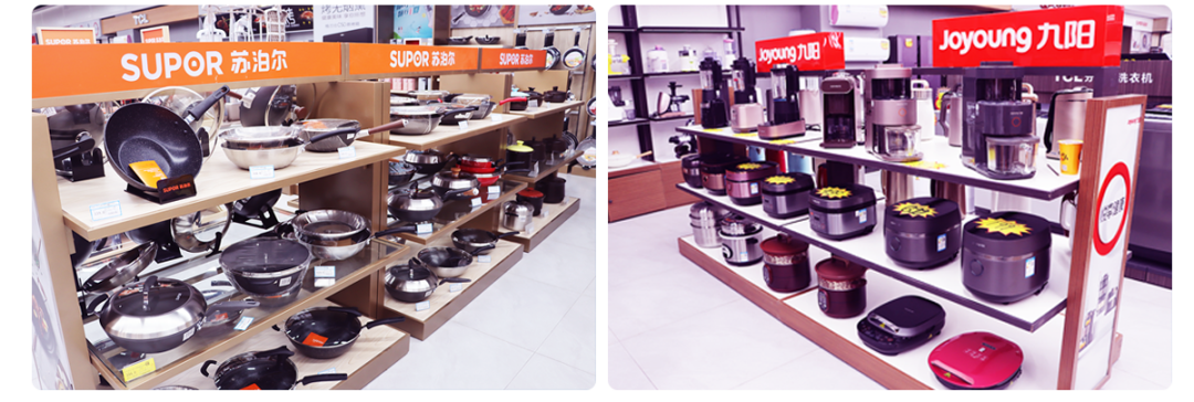 康巴赫不粘炒鍋、蘇泊爾系列炒鍋、榮事達(dá)系列電飯煲,九陽系列豆?jié){機(jī)等
