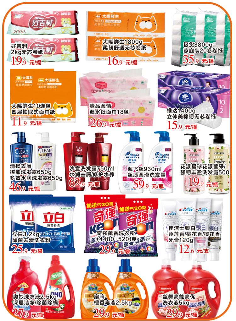一樣都不能少!大牌洗護(hù)、紙品家清等品類多樣,全家生活都滿足!