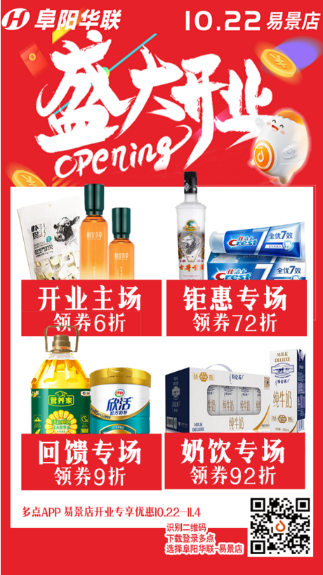 全場3.6折起 | 10月22日「阜陽華聯(lián)-易景店」,重塑內涵、盛裝開業(yè)!