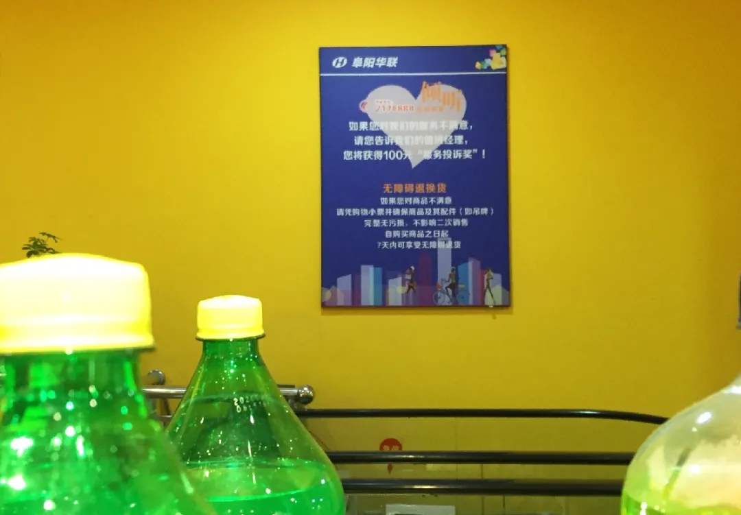 華聯(lián)門店設(shè)有飲水機、一次性紙杯、免費醫(yī)療急救箱、意見簿等,硬件設(shè)施是提供服務(wù)的基礎(chǔ)保障,