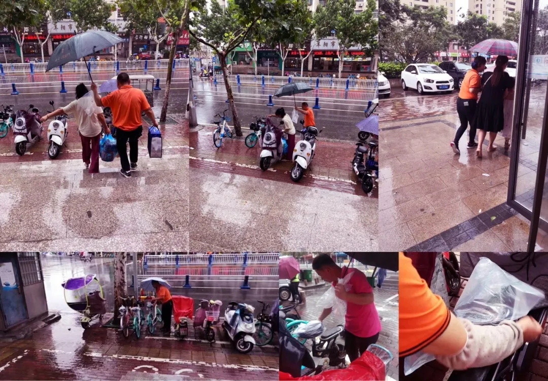 陰雨天氣,華聯(lián)員工都會細心地為顧客套上車座防淋濕,撐傘迎、送顧客。