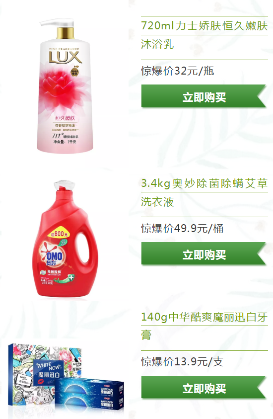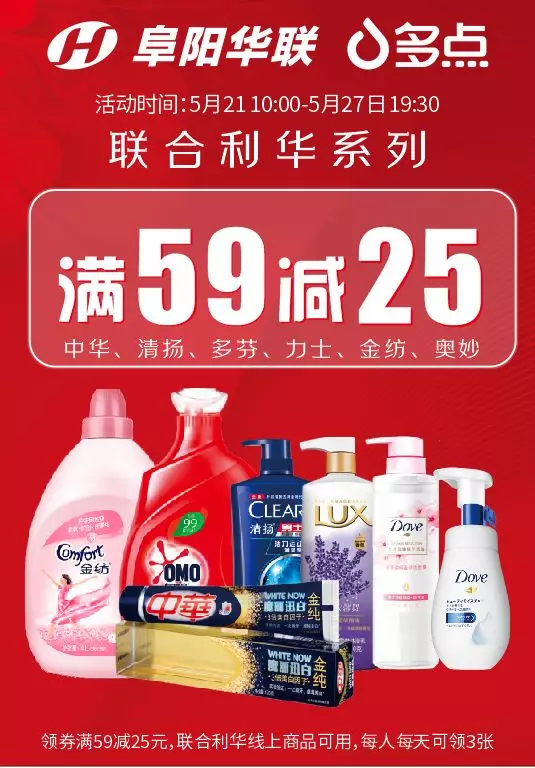 阜陽華聯(lián)攜手聯(lián)合利華線上全場滿59減25