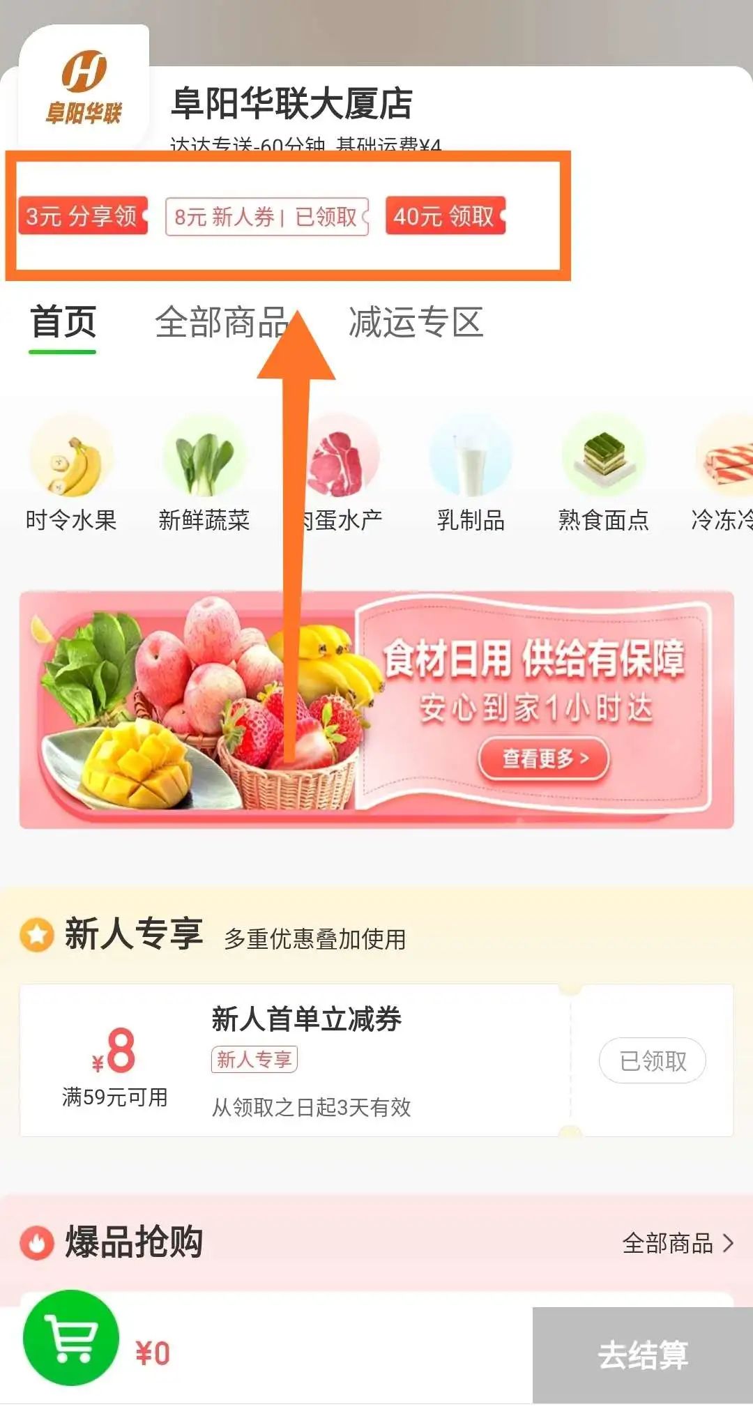 ①搜索“阜陽華聯(lián)”,領(lǐng)取專屬優(yōu)惠券