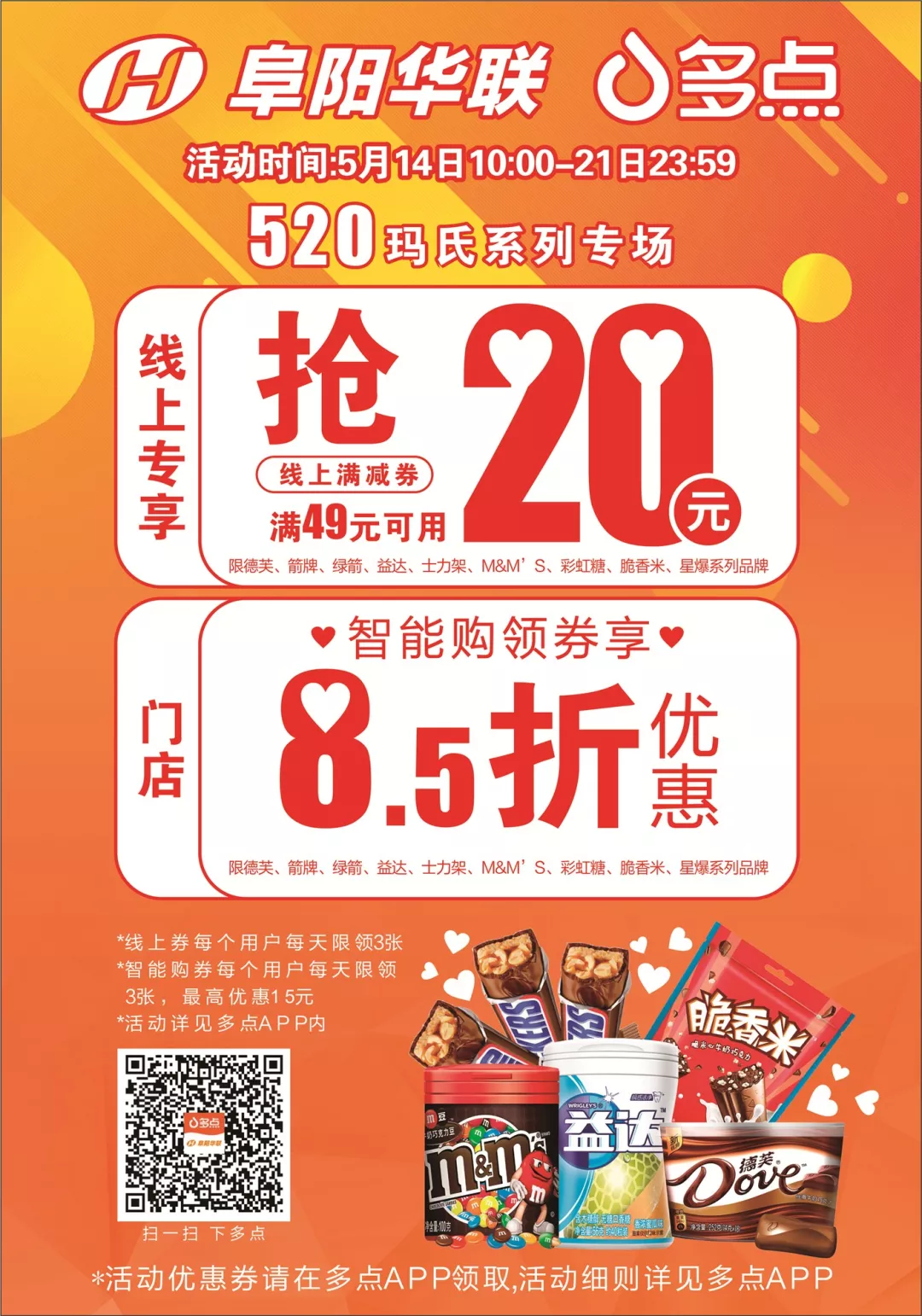 【阜陽華聯(lián)】520德芙滿49元減20元,百雀羚約你見“面”