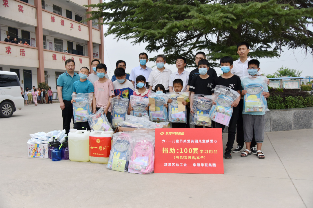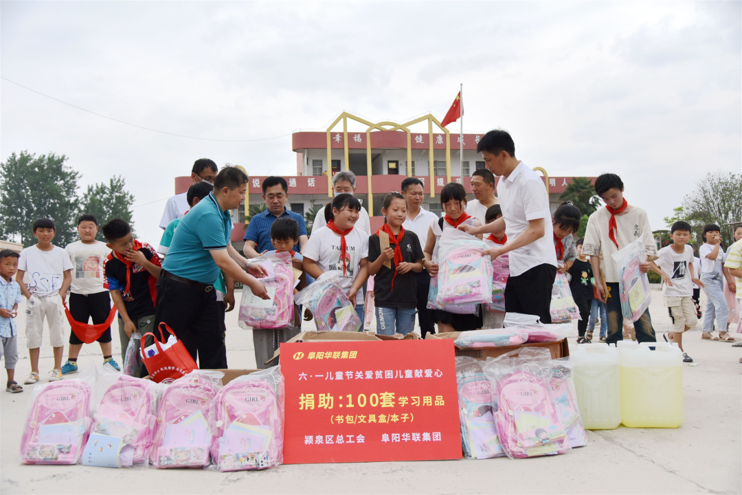 阜陽華聯(lián)集團(tuán)為孩子們送來了書包、文具盒、本子等學(xué)習(xí)用品100套,