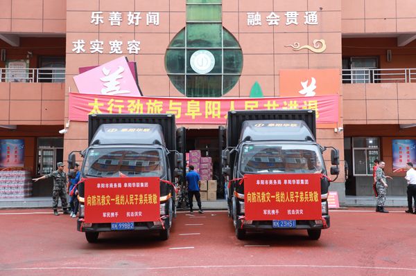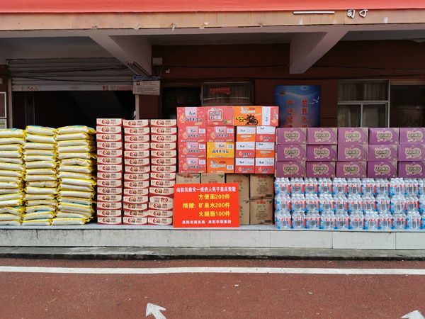 當(dāng)天上午,阜陽華聯(lián)集團(tuán)為他們送去了200件礦泉水、200件方便面、100件火腿腸。
