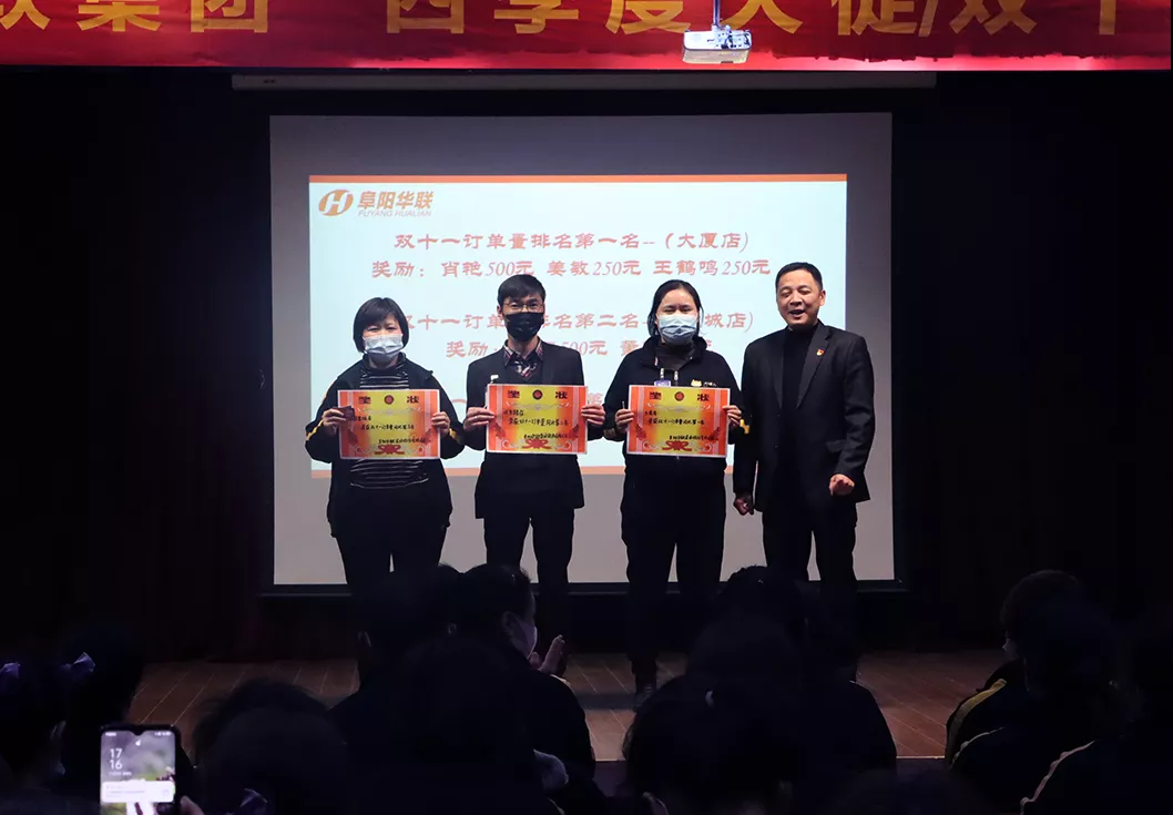 歷時兩日的大會,阜陽華聯(lián)集團對在雙11大促工作中表現(xiàn)卓越的員工進行了表彰。