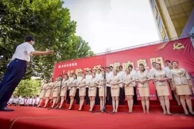 十二強選手激情歌聲蕩氣回腸,精美的演出服、熱情的舞蹈、嘹亮的紅歌點燃七月的阜城!