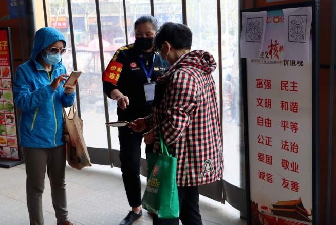 一天時間內,志愿者們不厭其煩地引導進店、幫助掃碼,不厭其煩的闡述步驟,其中不乏難溝通的顧客,但他們一如既往地耐心講解。