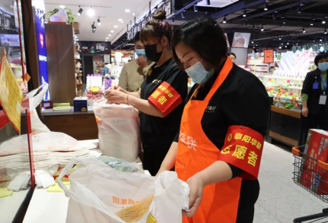 疫情形勢多變,為滿足附近居民急劇增長的民生需求,阜陽華聯(lián)志愿者們齊心協(xié)力扛貨上貨,連續(xù)奮戰(zhàn)10多個小時,全力保證商品持續(xù)供應。