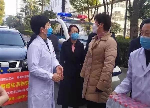 疫病無(wú)情人間有愛(ài),阜陽(yáng)華聯(lián)集團(tuán)有限公司心系防控一線的醫(yī)護(hù)工作者和公安交警,積極響應(yīng)市總工會(huì)號(hào)召。2020年1月31日上午,阜陽(yáng)市總工會(huì)黨組書記、副主席房繼紅,副主席吳燕與阜陽(yáng)華聯(lián)集團(tuán)總經(jīng)理樊曉俐、副總張曉東及阜陽(yáng)華聯(lián)工會(huì)主席周軍一行攜帶生活物資前往阜陽(yáng)市二院與交警大隊(duì)慰問(wèn)捐贈(zèng)。