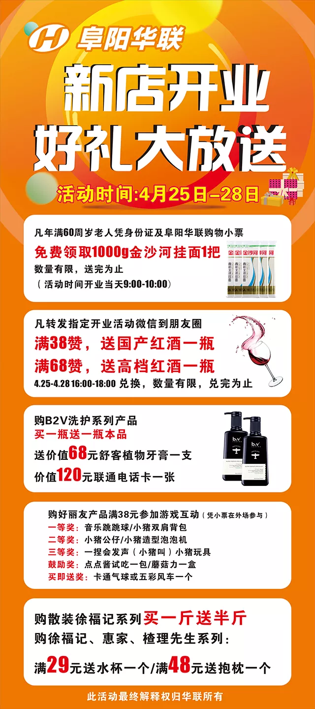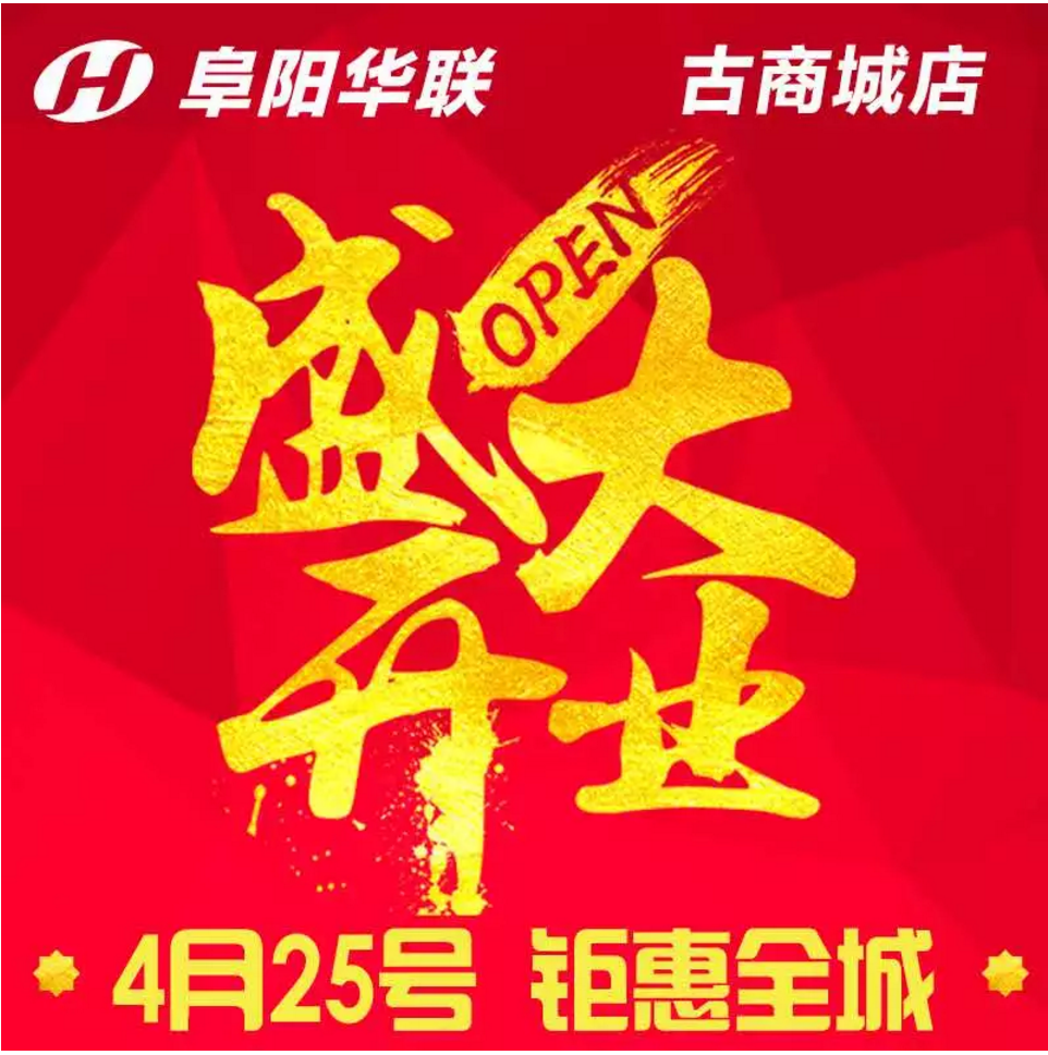 【阜陽華聯(lián)】古商城店盛大開業(yè),鉅惠全城,等你來搶!