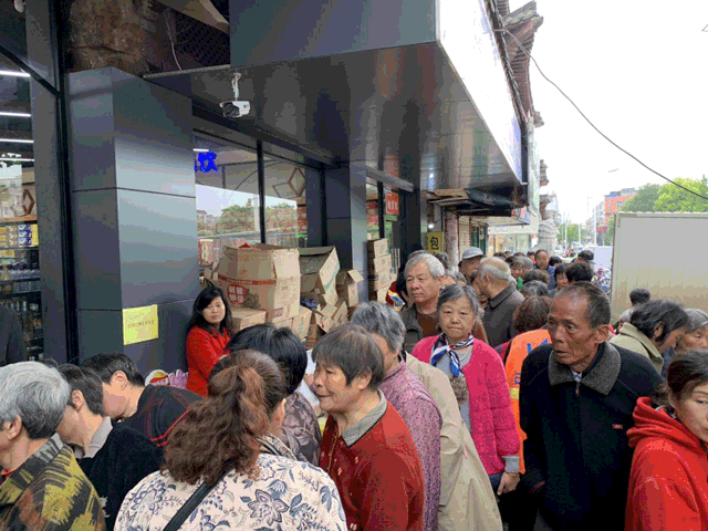 工作人員為年滿60的顧客免費(fèi)領(lǐng)取1000g金沙河掛面,顧客都為華聯(lián)豎起大拇指!贊的不止是商品,更是服務(wù)!