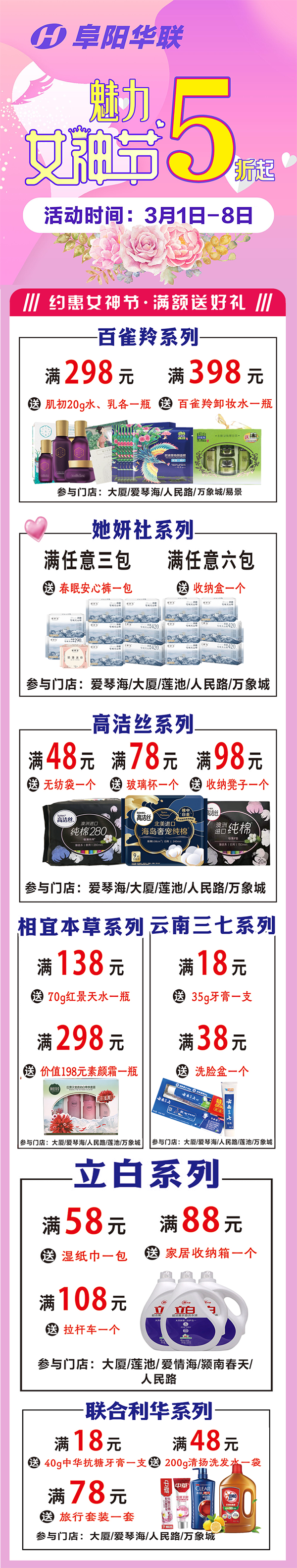 魅力女神節(jié)·全場(chǎng)5折起!阜陽華聯(lián)花式福利寵愛你~