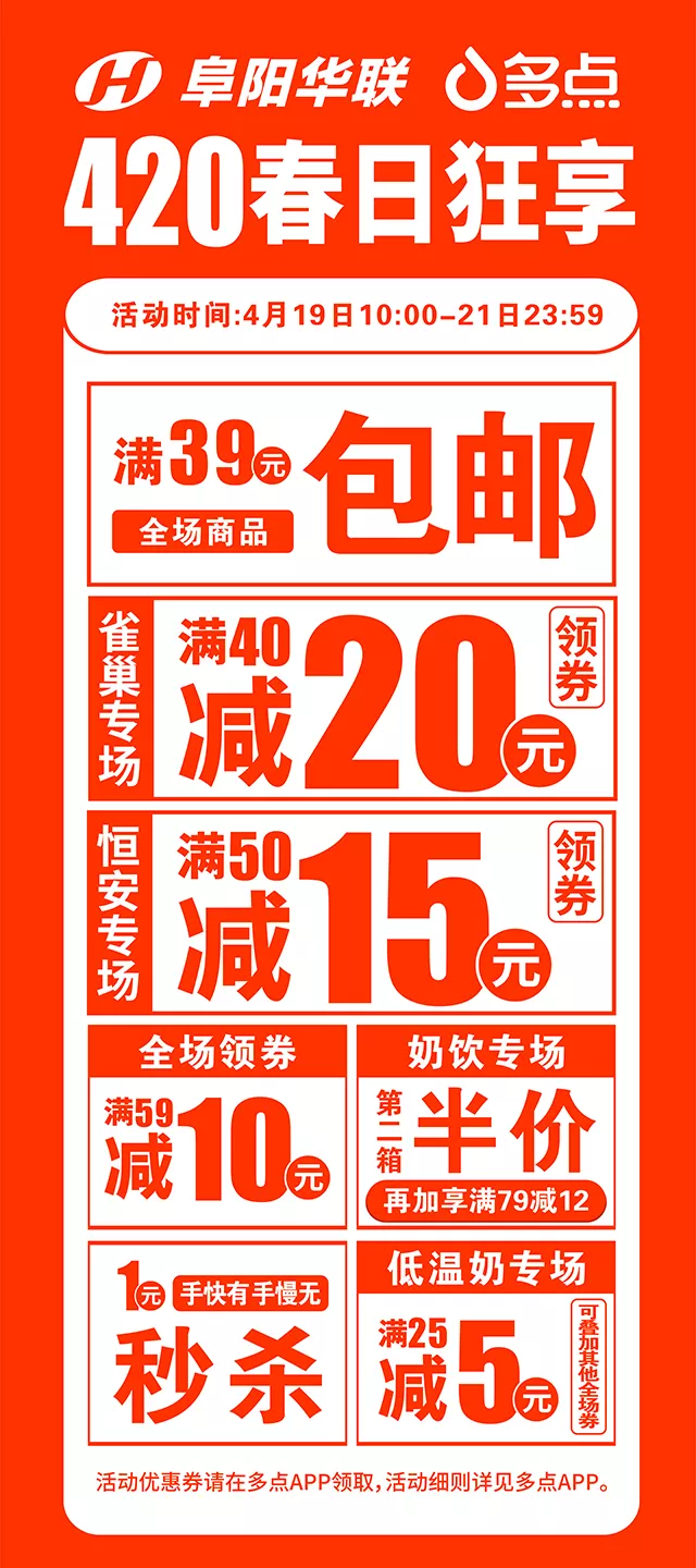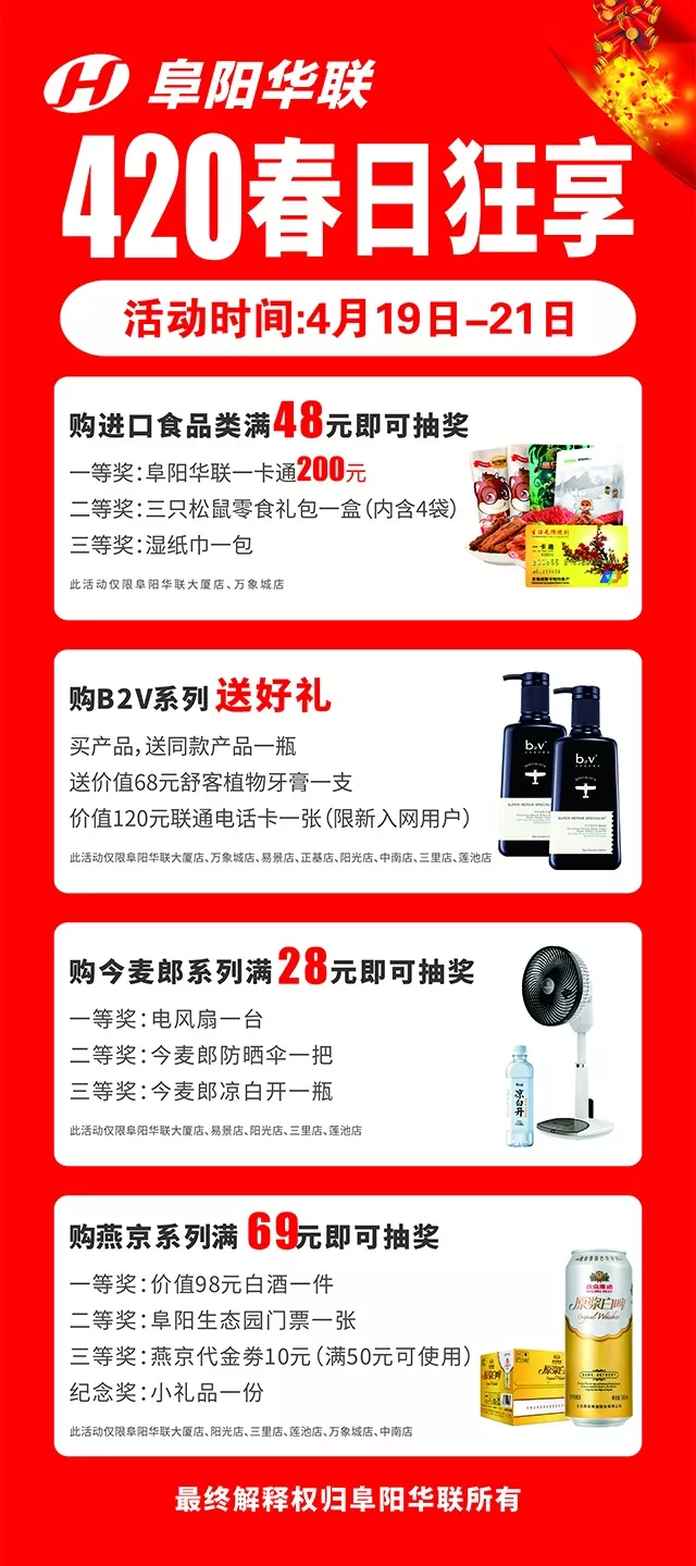 【阜陽華聯(lián)】420春日狂享高能預(yù)警!前方大波優(yōu)惠來襲!