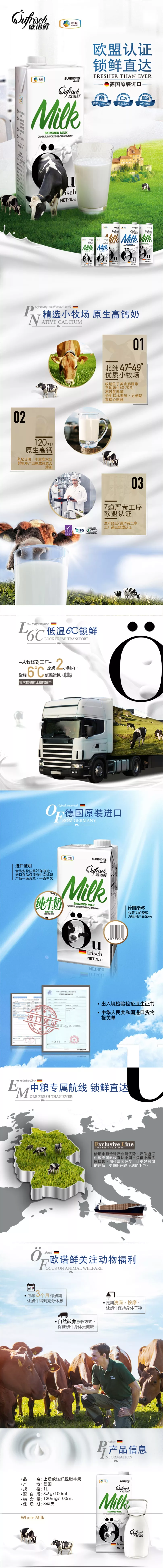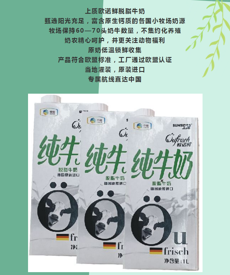 德國進(jìn)口上質(zhì)歐諾鮮脫脂牛奶1L