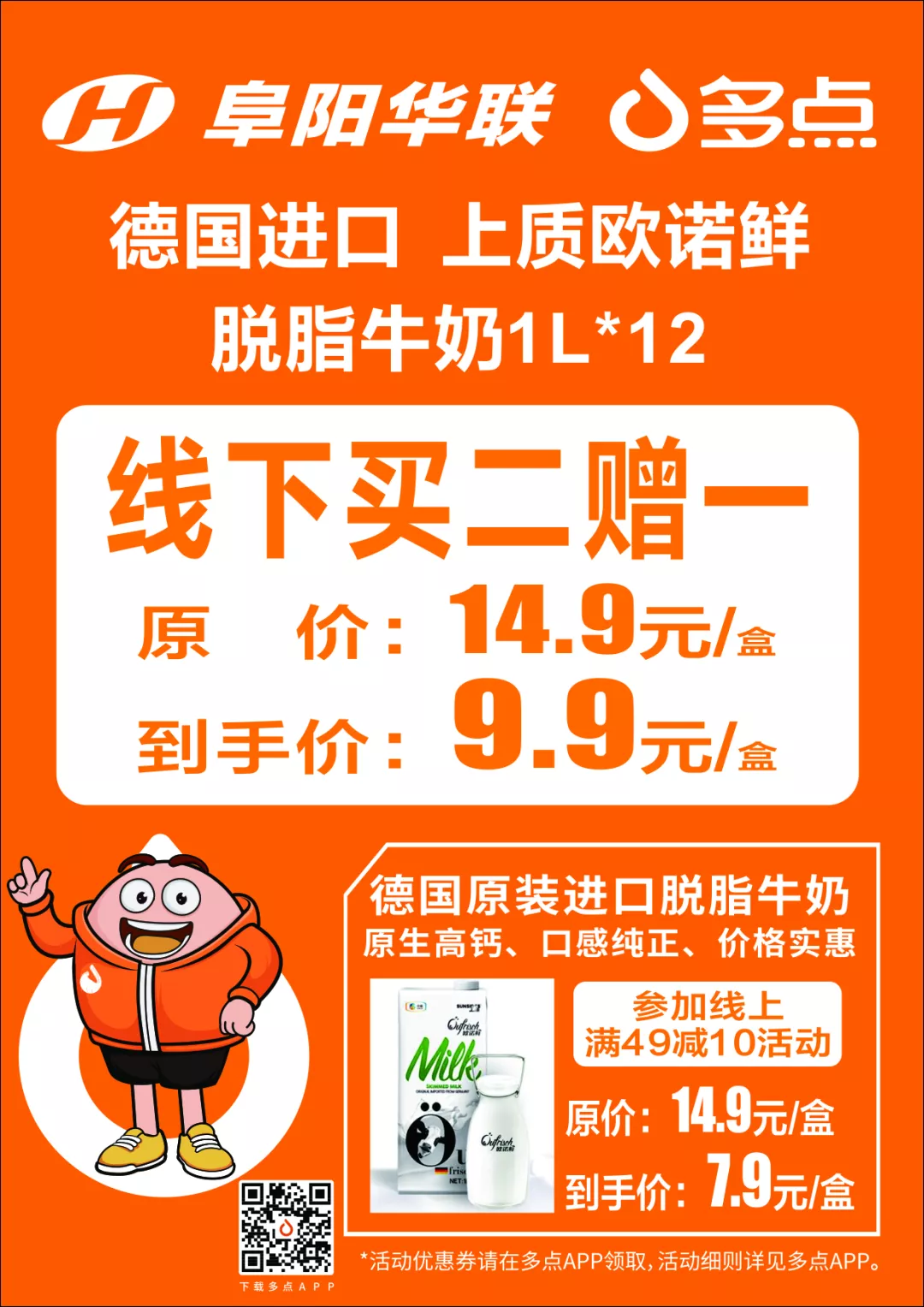 阜陽華聯(lián)多點(diǎn)APP購買還可參加滿49元減10元活動(dòng)