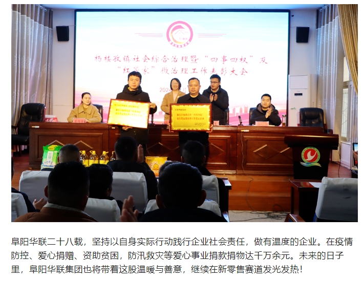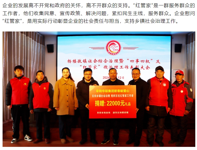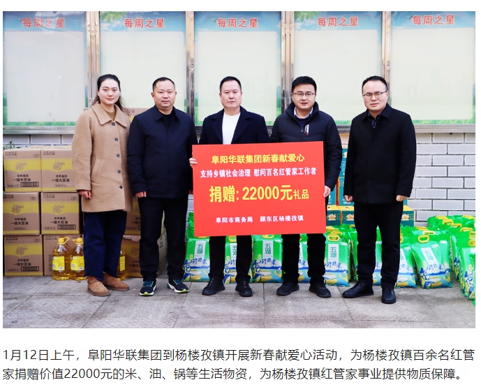 阜陽華聯(lián)集團(tuán)助力楊樓孜鎮(zhèn)“紅管家”,新春獻(xiàn)愛心捐贈活動