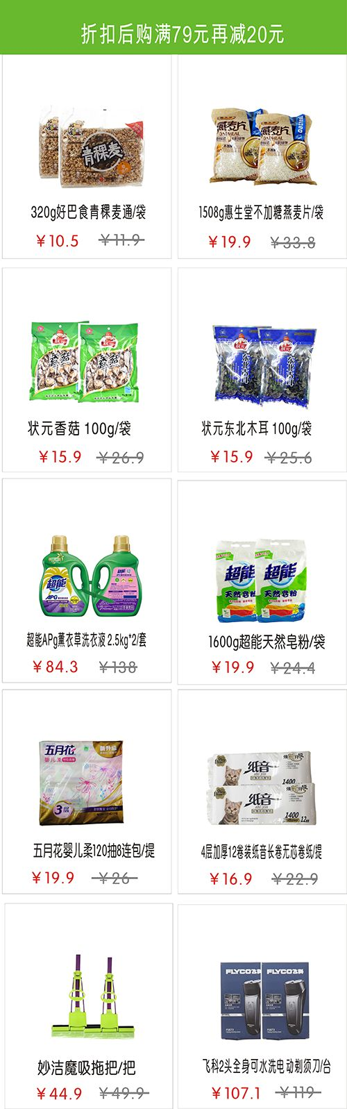 三:部分商品購物滿79元立減20元