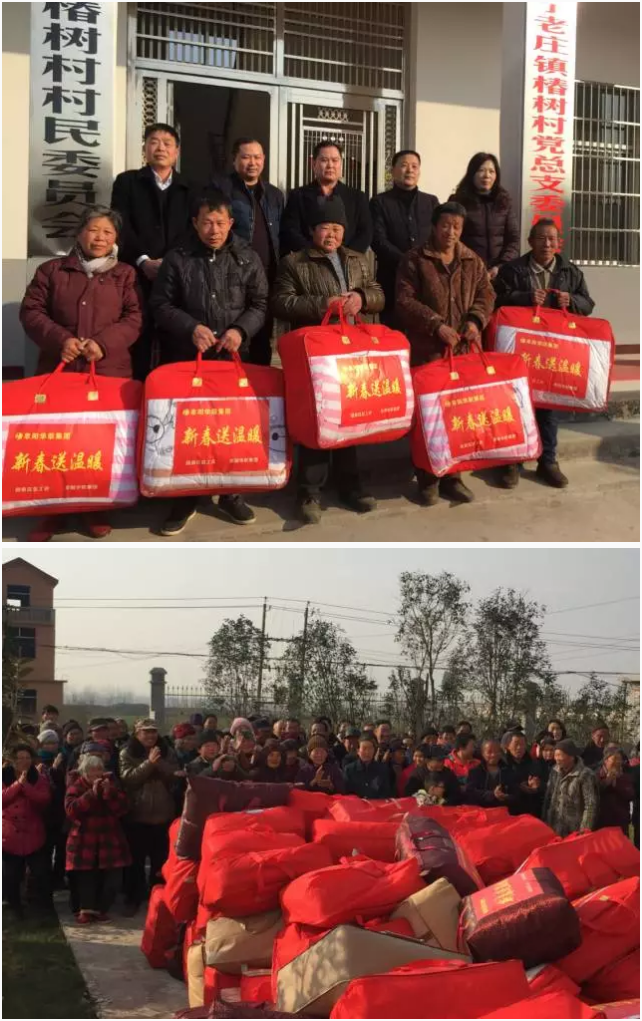 承擔(dān)社會責(zé)任,關(guān)愛貧困家庭。1月23日下午,阜陽華聯(lián)集團攜手潁泉總工會走入農(nóng)村,開展關(guān)愛貧困家庭新春公益行。阜陽華聯(lián)集團副總經(jīng)理張曉東、工會主席周軍、潁泉區(qū)總工會黨組書記、副主席胡濱、副主席王照華一行,帶著滿滿一大車的棉被、生活用品等價值3萬元的慰問品,來到了潁泉區(qū)寧老莊鎮(zhèn)椿樹村村民委員會,為張椿村的貧困村民送去了新春祝福,溫暖了整個椿樹村村民委員會。