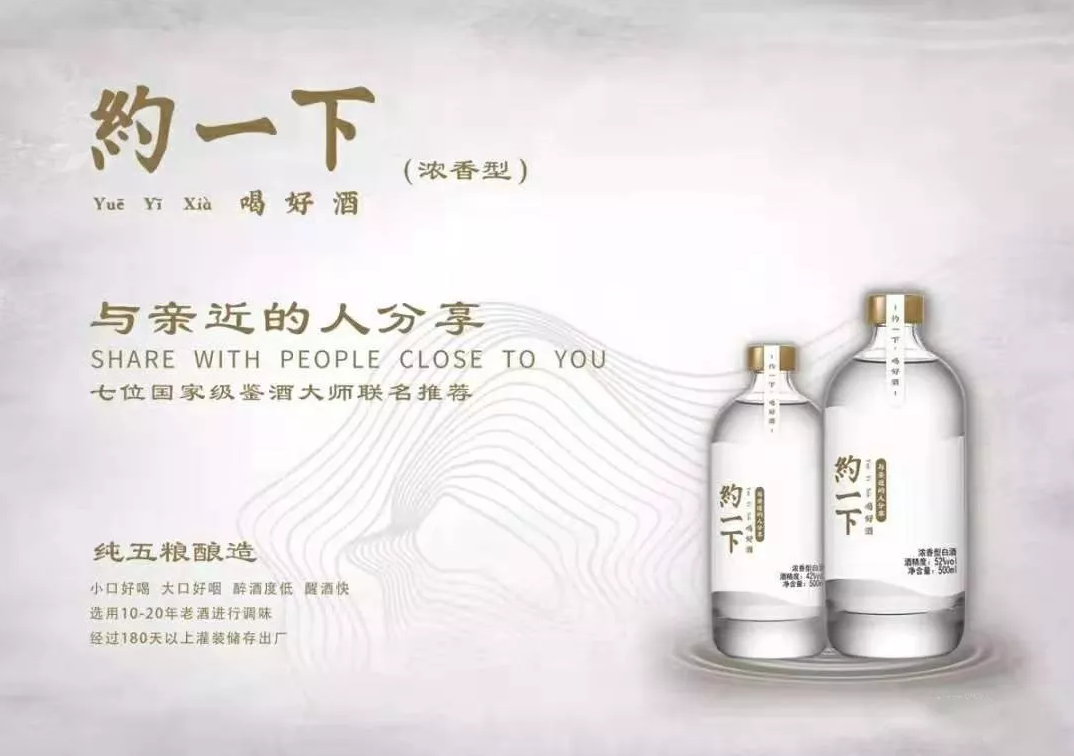 “約一下”酒體無(wú)色透明,窖香、糧香復(fù)合優(yōu)雅,綿柔甘潤(rùn),自然協(xié)調(diào),余味爽凈,具有濃香型白酒的典型風(fēng)格。