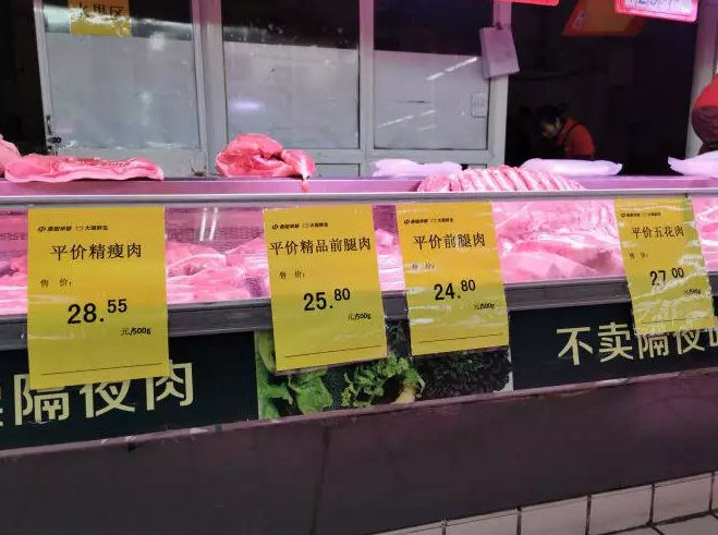 “每公斤比昨天便宜4元”市發(fā)改委在測算昨日豬肉銷售市場均價后華聯(lián)超市制定出了今天的銷售價格