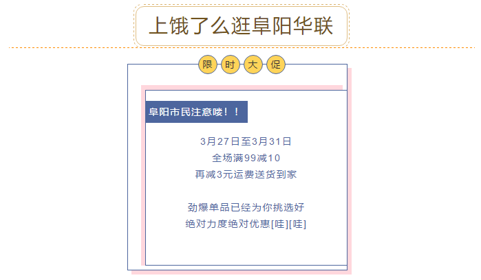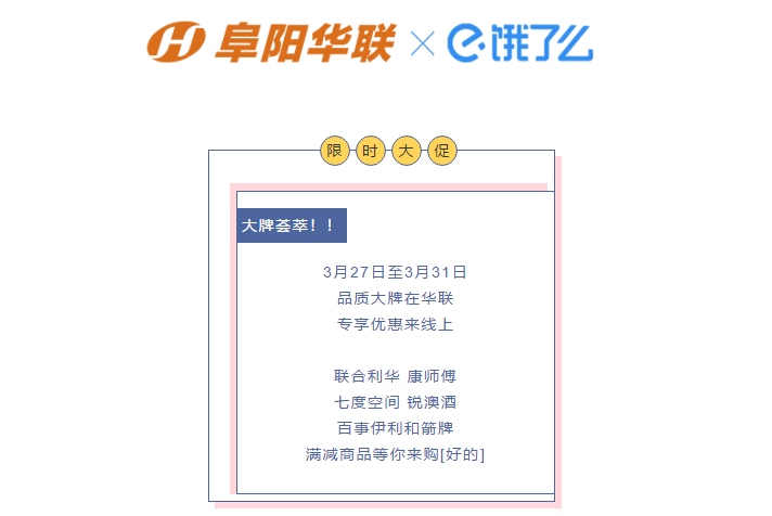【你好阜陽,我是華聯(lián)】 3月27日至3月31日 餓了么攜手阜陽華聯(lián)送福利