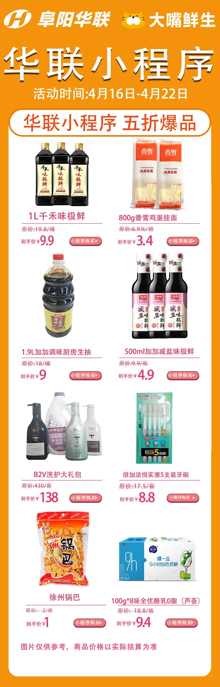 更多爆款折扣商品,請(qǐng)進(jìn)入阜陽華聯(lián)小程序查看。