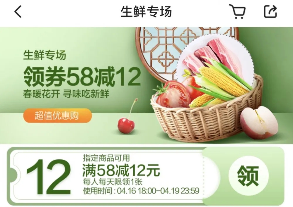 活動(dòng)三:生鮮專(zhuān)場(chǎng)領(lǐng)卷滿(mǎn)58減12