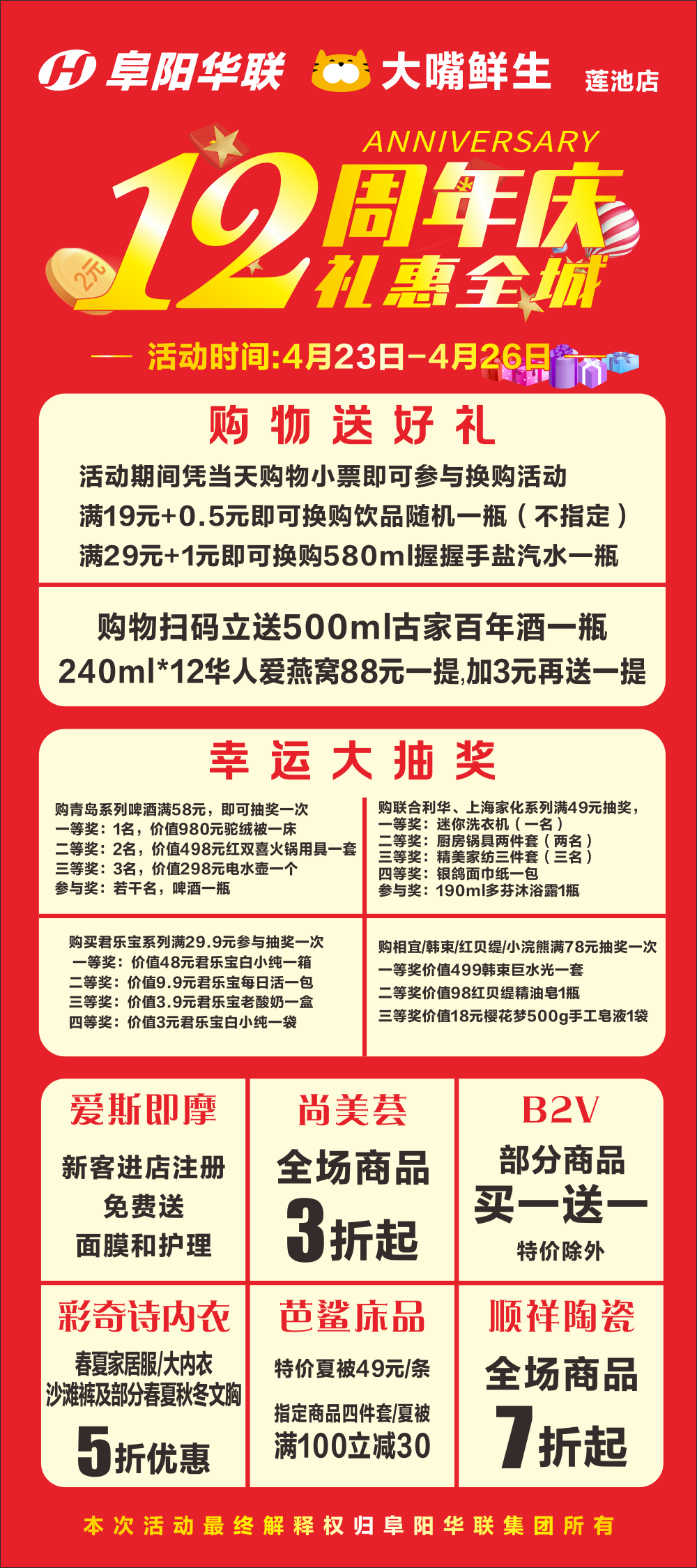 阜陽(yáng)華聯(lián)蓮池店12周年慶,禮惠全城!