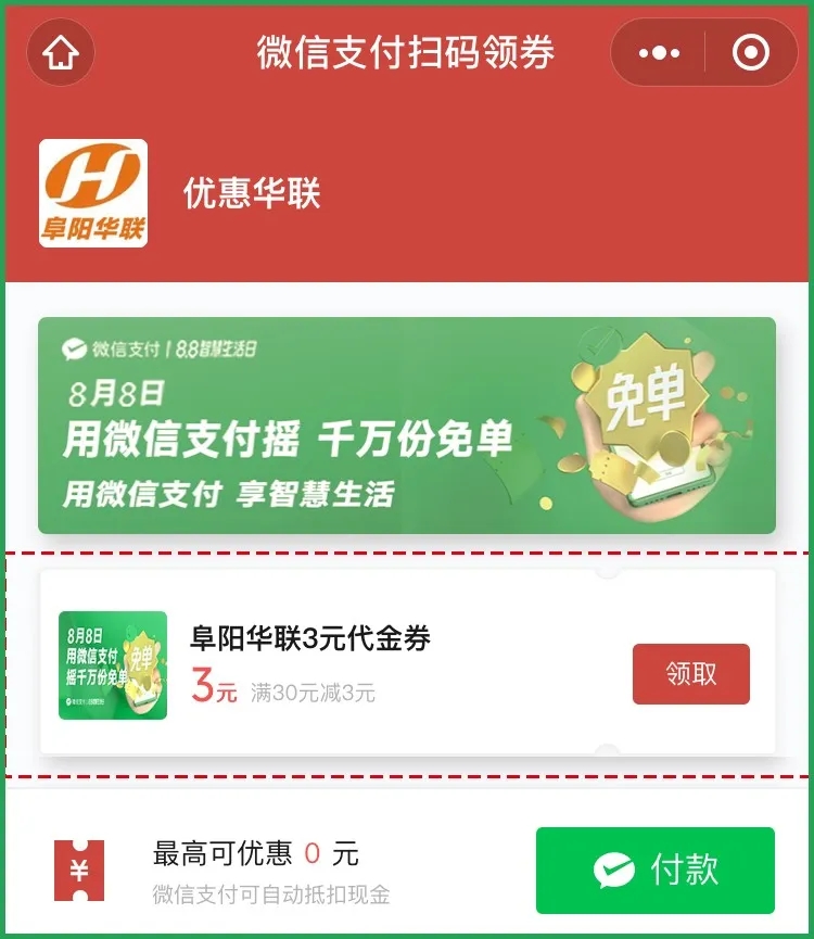 阜陽(yáng)華聯(lián) × 微信支付|88智慧生活日來(lái)襲,大量?jī)?yōu)惠福利等你Pick~