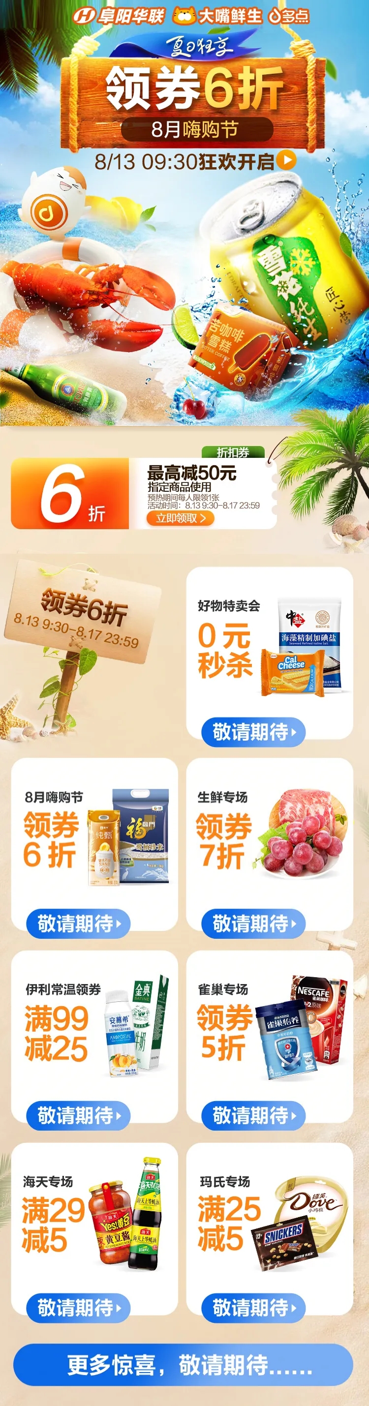 阜陽華聯(lián) | 8月線上嗨購節(jié)預(yù)告來襲~搶6折神券,越購越嗨皮!