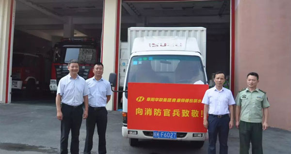 阜陽(yáng)華聯(lián)集團(tuán)慰問(wèn)消防官兵:值此建軍91周年之際,81日阜陽(yáng)華聯(lián)集團(tuán)常務(wù)副總程凱、大平洋大酒店、香港財(cái)富廣場(chǎng)、燕莎百貨等單位領(lǐng)導(dǎo)一行赴潁州、穎泉、潁東及開發(fā)區(qū)消防大隊(duì)、交警大隊(duì)、市容局,慰問(wèn)阜陽(yáng)市消防官兵,交警、城市管理者,帶去礦泉水、大米、面粉、西瓜等防暑降溫用品……