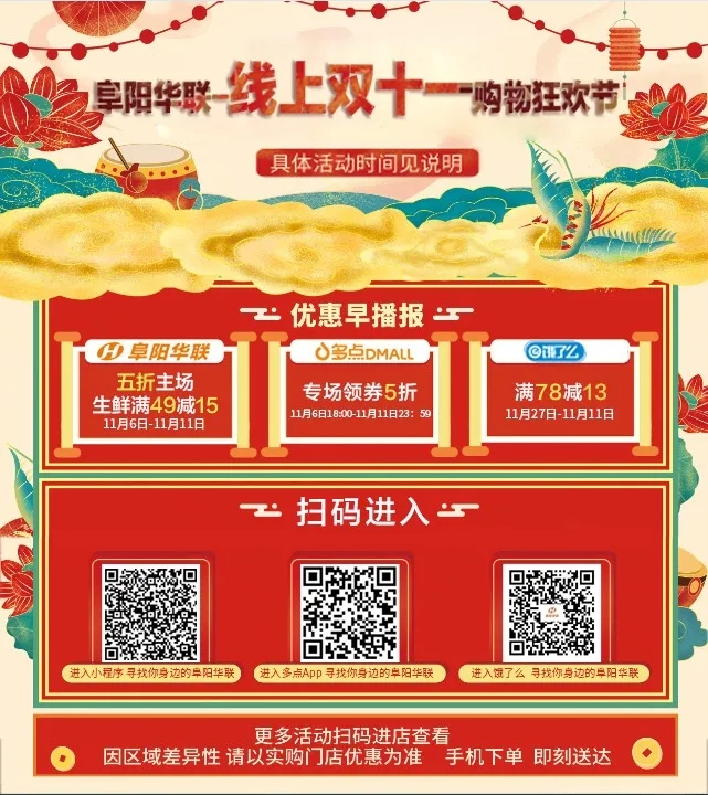 阜陽(yáng)華聯(lián)雙十一火力全開(kāi),三大線上平臺(tái)購(gòu)物5折起,趕緊加購(gòu)吧!