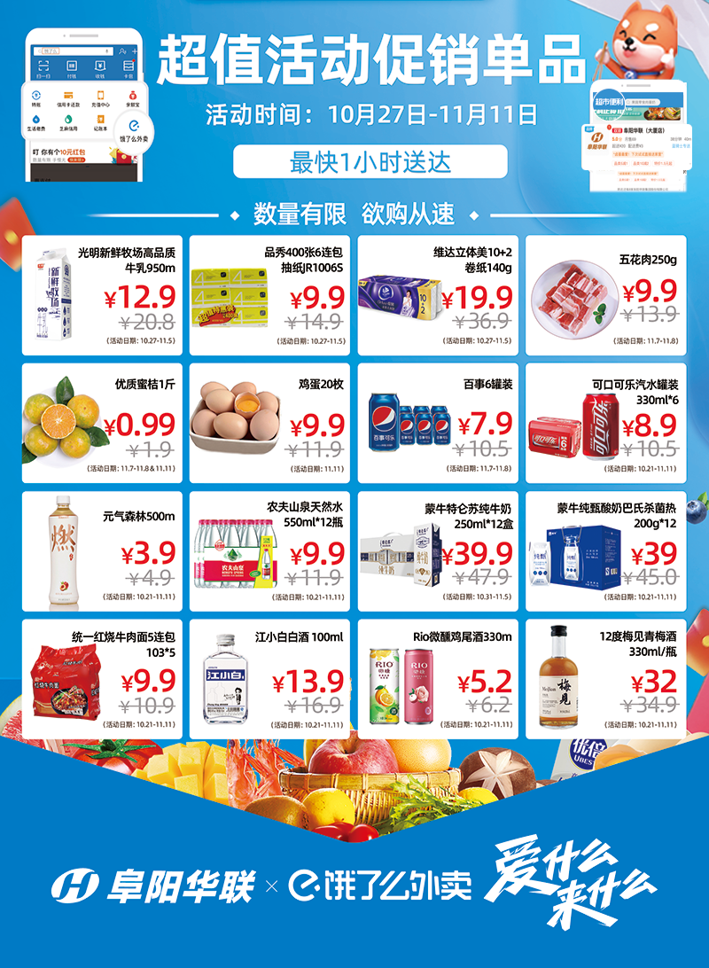 *更多驚爆商品,登錄餓了么,搜索阜陽(yáng)華聯(lián)……
