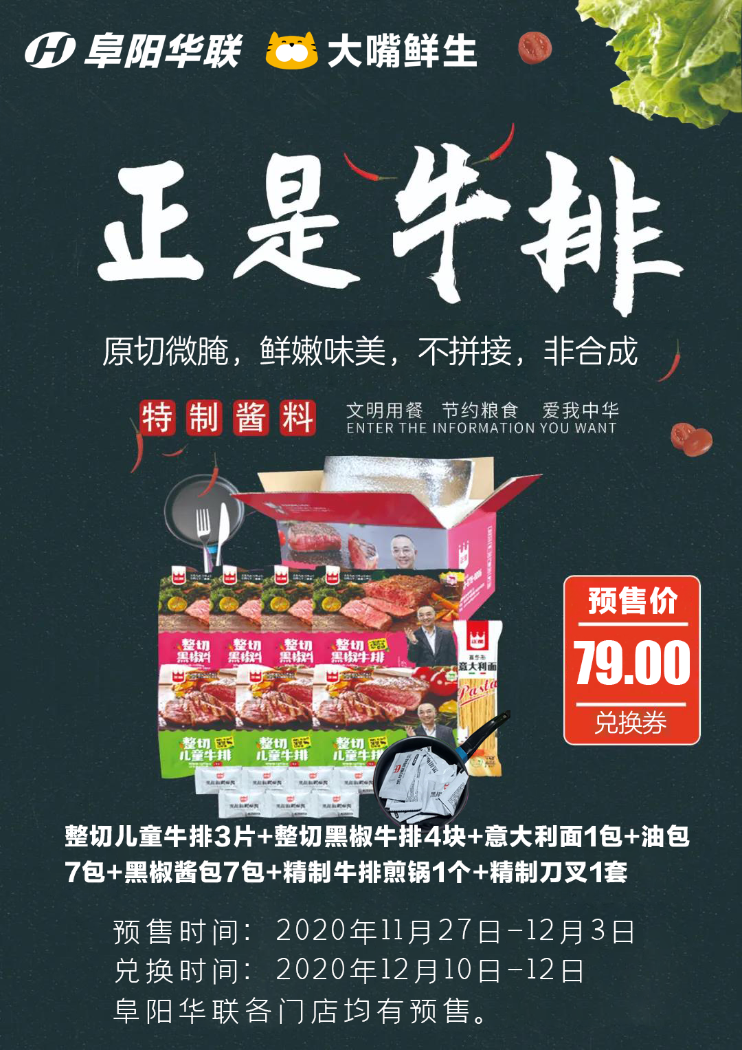 【內(nèi)附視頻】超劃算!阜陽華聯(lián)“正是原肉整切牛排套餐”來襲,79元預(yù)售還送鍋,速來搶購!