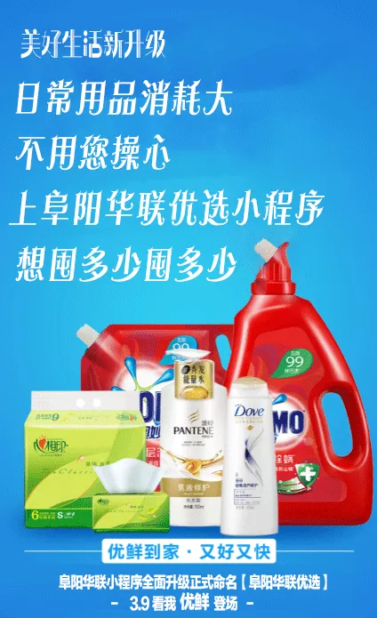 隨著阜陽(yáng)華聯(lián)優(yōu)選小程序的升級(jí),涵蓋常生活所需的生鮮熟食、米面糧油、日用百貨