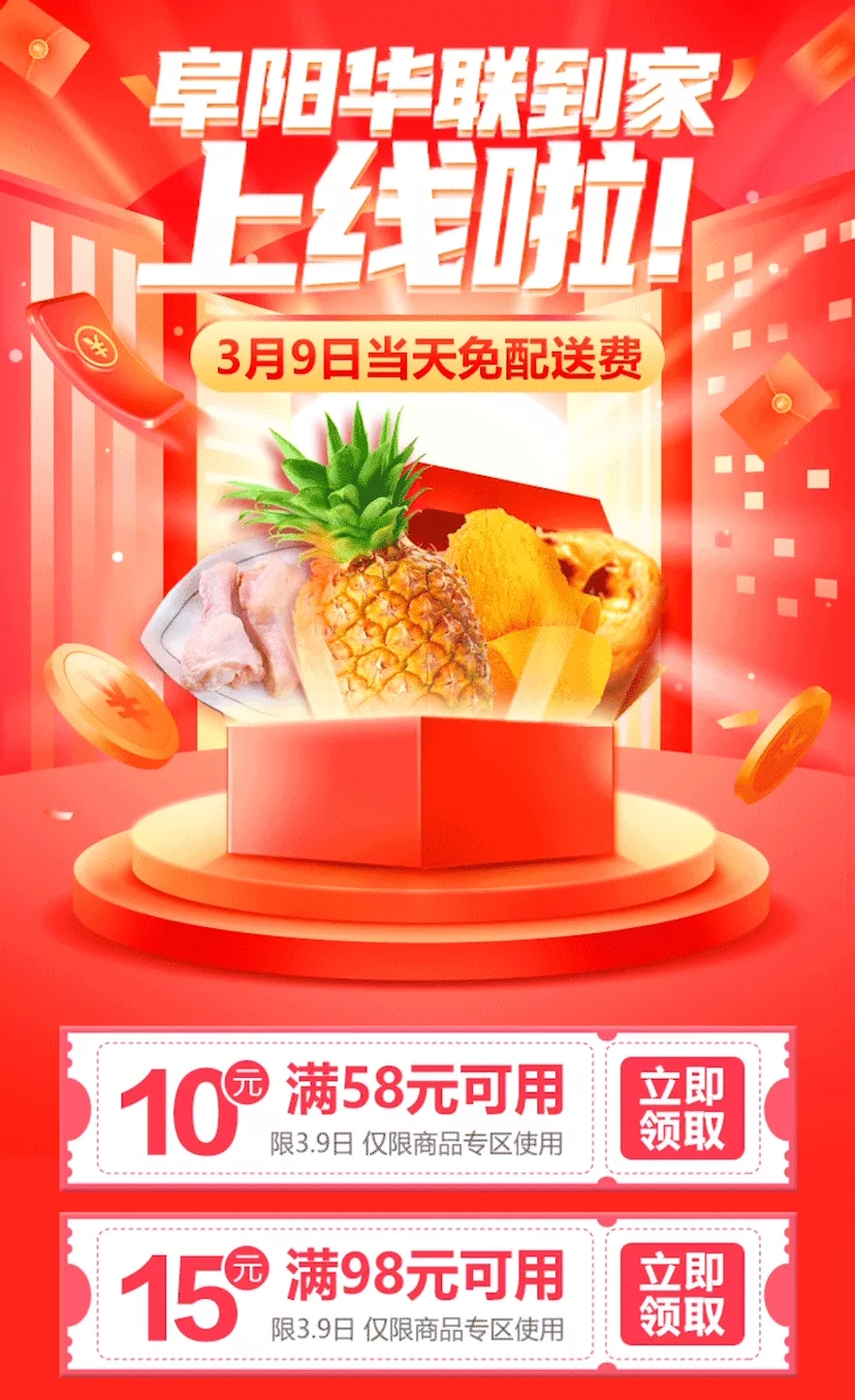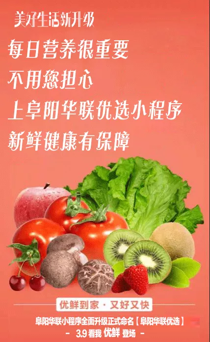阜陽(yáng)華聯(lián)優(yōu)選小程序全面升級(jí),3月9日優(yōu)鮮登場(chǎng)免郵配送啦!