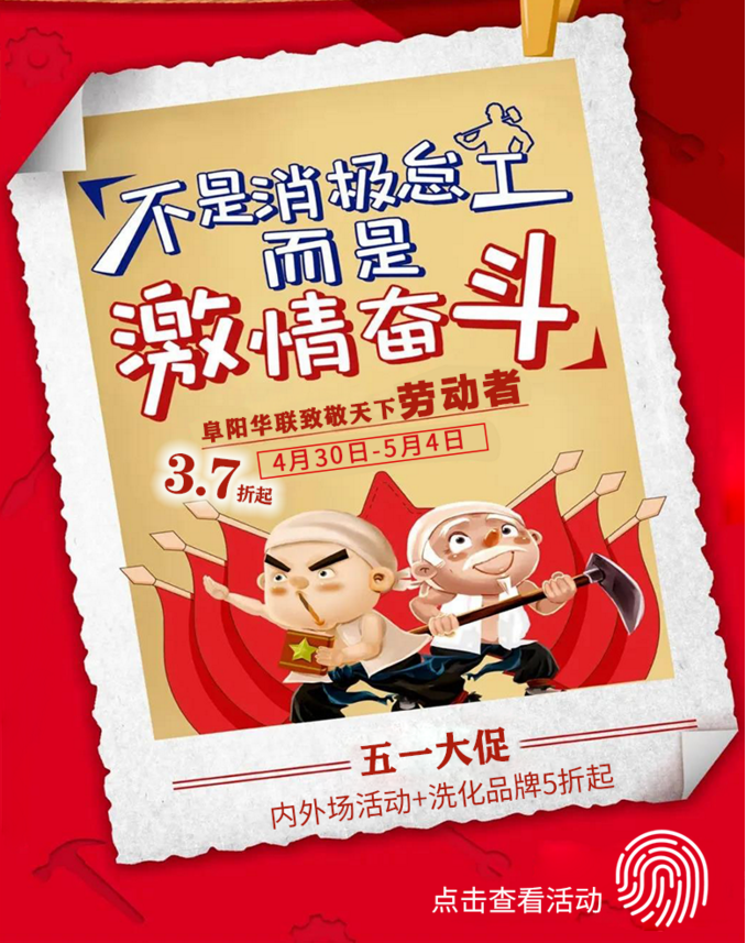 你眼中的勞動節(jié)是什么樣的? | 阜陽華聯(lián)帶你玩轉(zhuǎn)五一,全場3.7折起