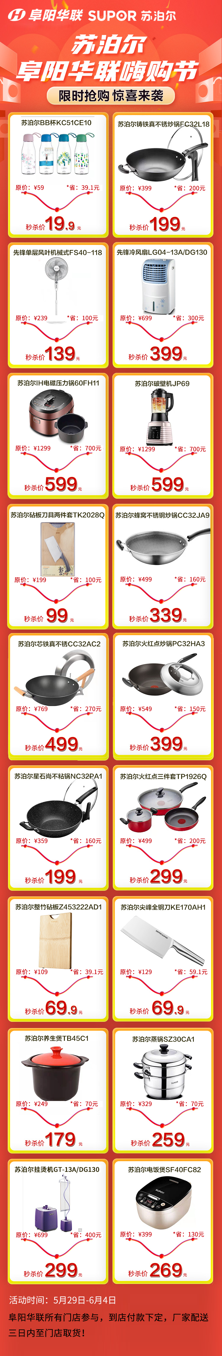 來阜陽華聯(lián)搶購蘇泊爾品牌商品吧 !
