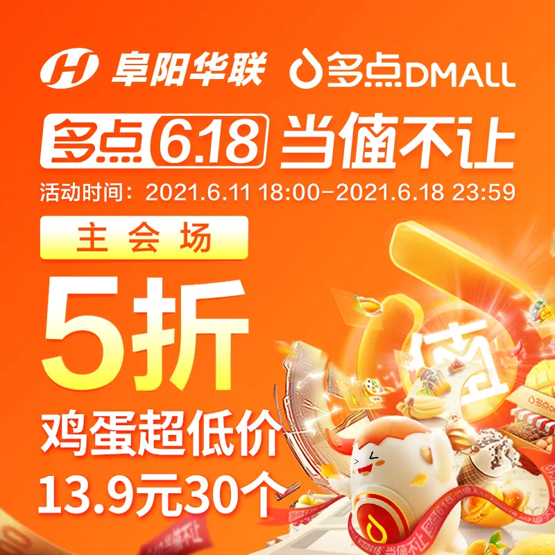 「阜陽華聯(lián)&多點(diǎn)618」主場5折!30枚雞蛋到手價(jià)僅13.9元?。?/h1>