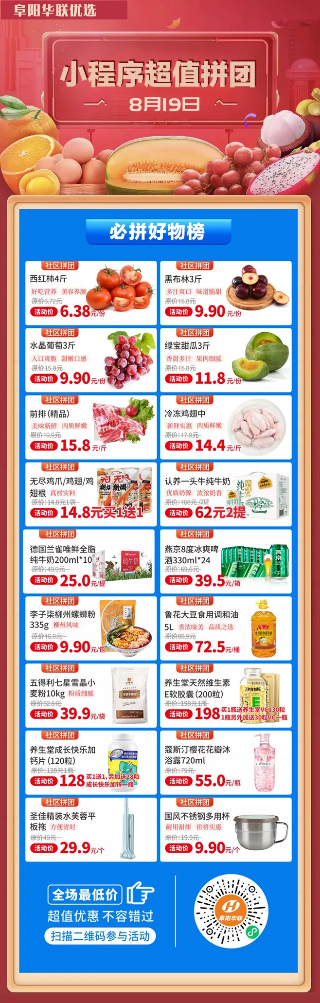 超值 | 阜陽華聯(lián)優(yōu)選--8月19日喊你來拼團!