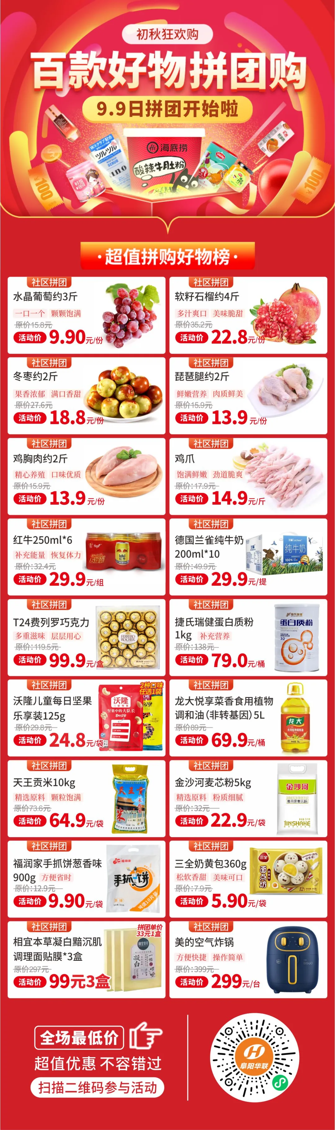 真實(shí)惠 | 阜陽華聯(lián)優(yōu)選9·9超值拼團(tuán)好物火熱開拼!
