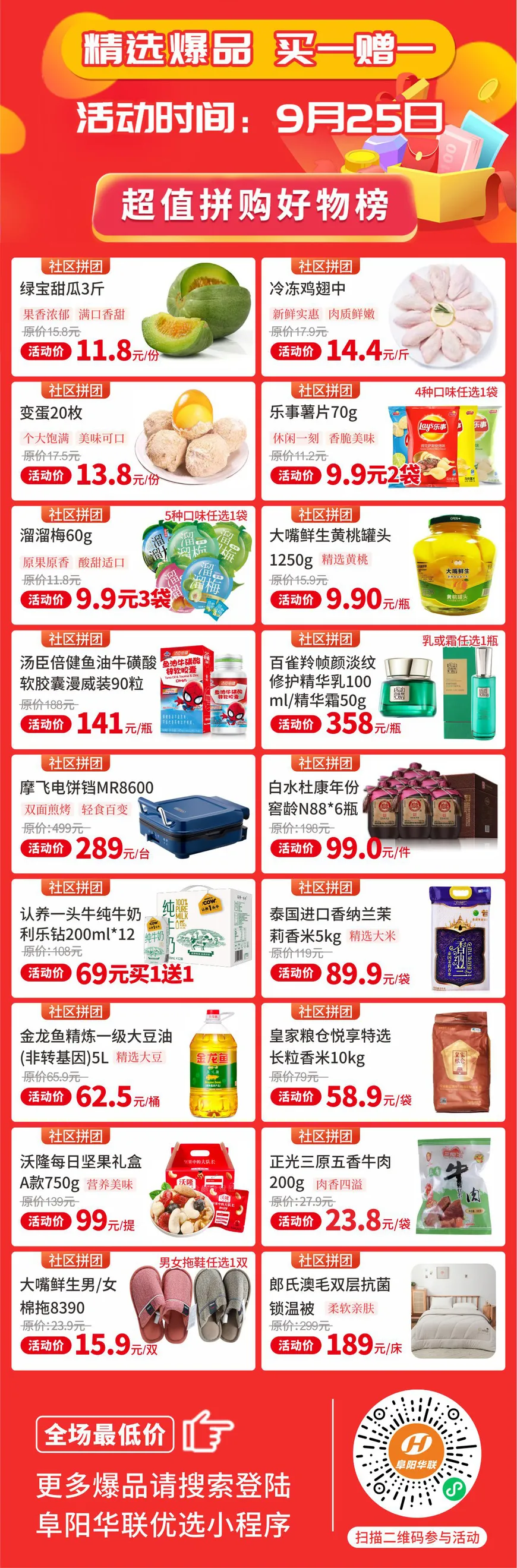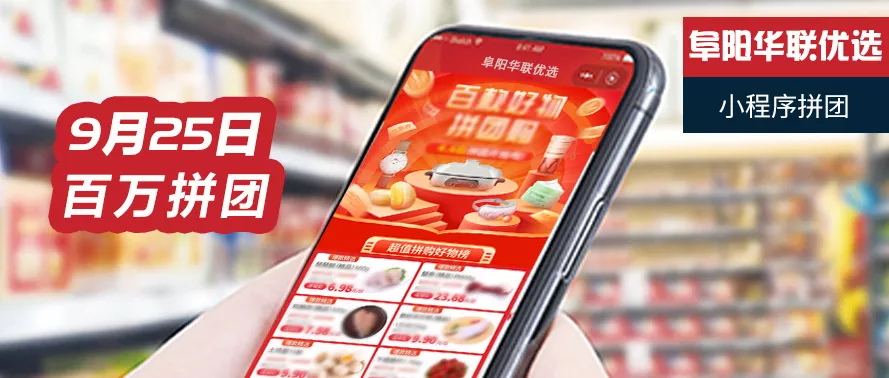 #9·25狂歡來襲# 阜陽華聯(lián)優(yōu)選百萬拼團,鉅惠不容錯過??!