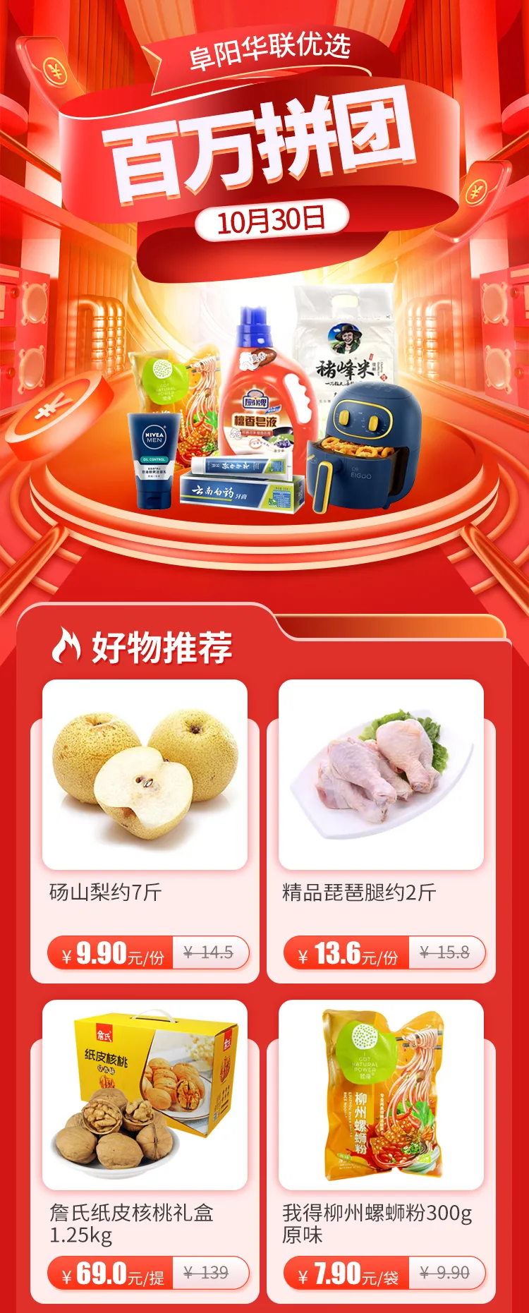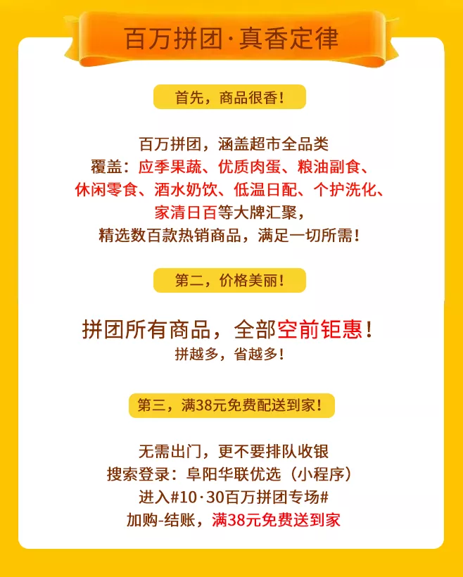 #10·30狂歡來襲# 阜陽華聯(lián)優(yōu)選百萬拼團(tuán),鉅惠不容錯(cuò)過?。?/h1>