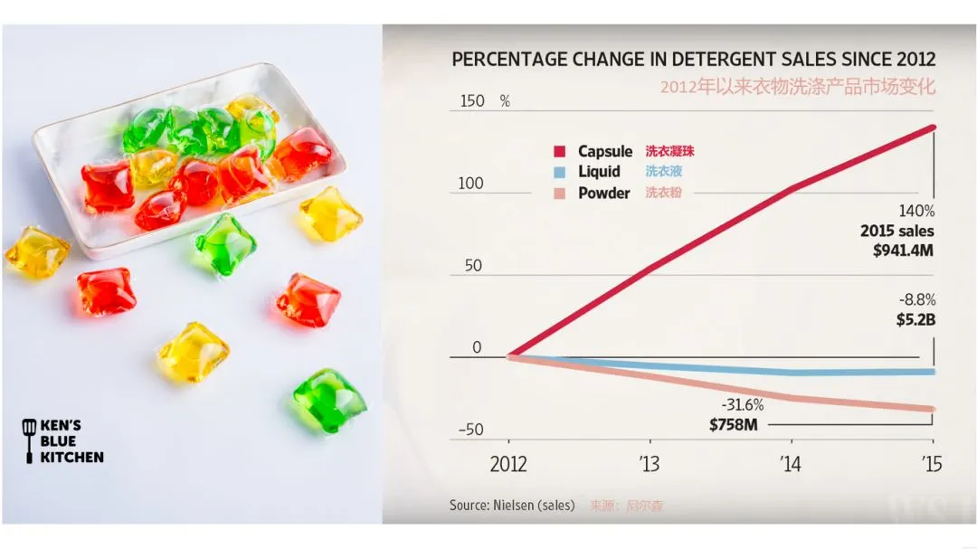 洗衣凝珠,被稱為第四代革新洗衣用品(洗衣皂-洗衣粉-洗衣液-洗衣凝珠),
