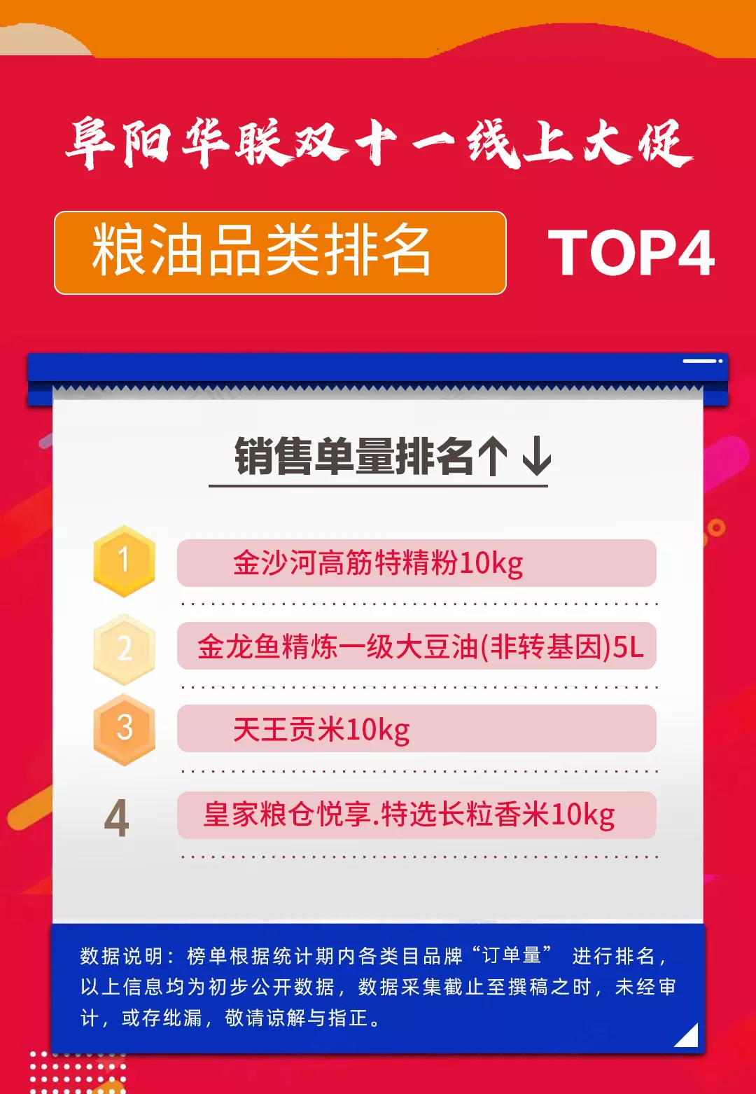 銷售前三名分別是:金沙河面粉、金龍魚(yú)大豆油、天王貢米,糧油三巨頭的寶座穩(wěn)如泰山。