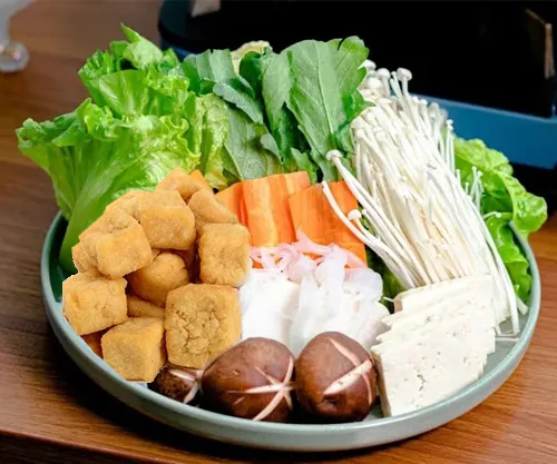 新鮮脆嫩的油麥菜、生菜,噴香的豆腐泡,還有網(wǎng)紅金針菇,解膩又滿足。