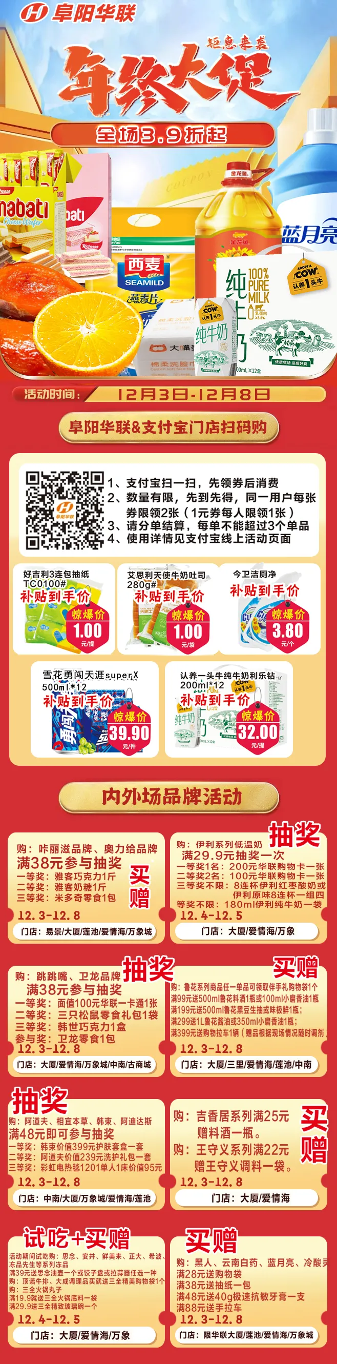 阜陽華聯(lián) | 年終大促全場③.⑨折起,嗨購5天!